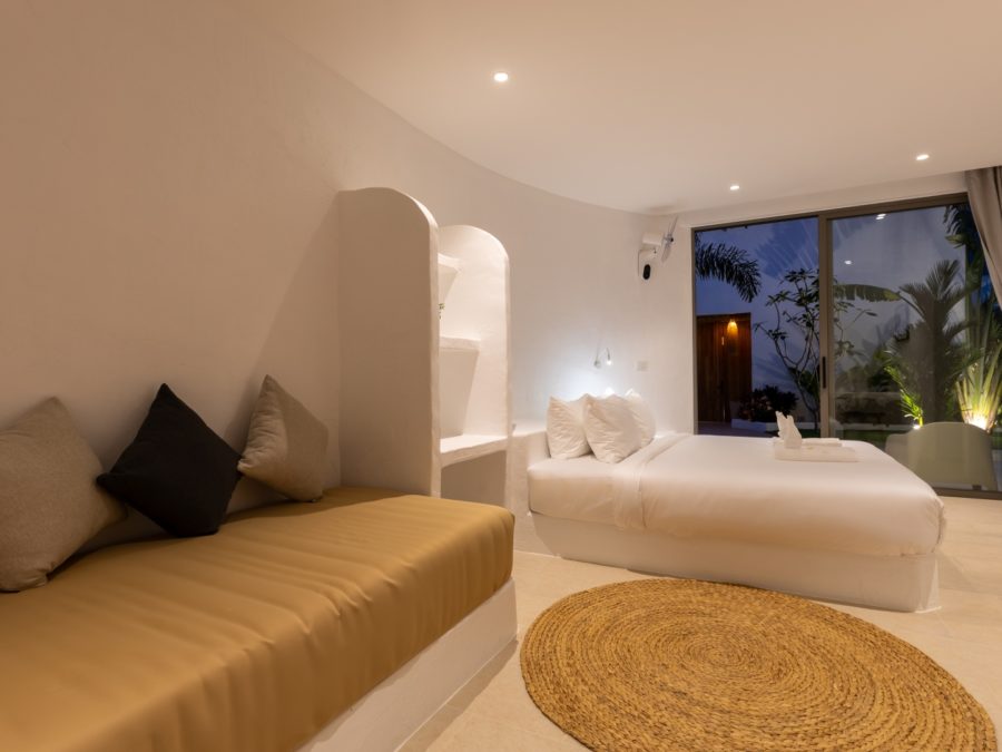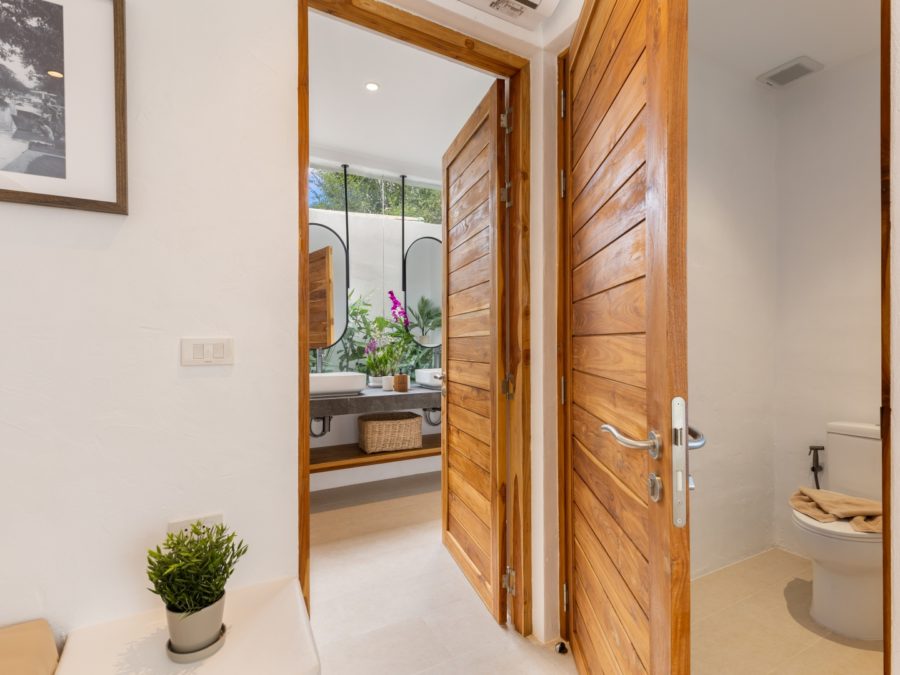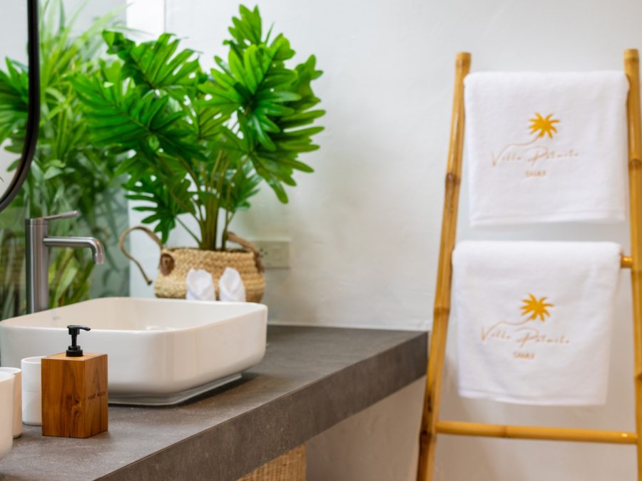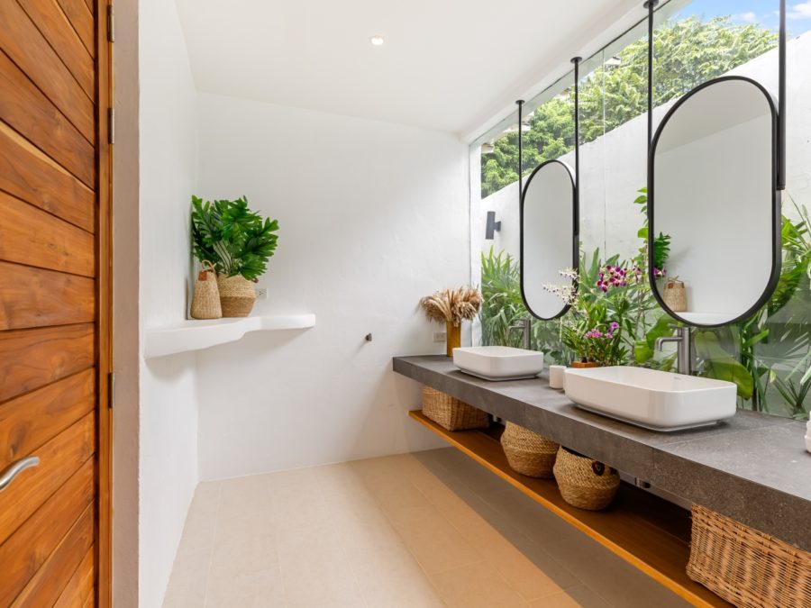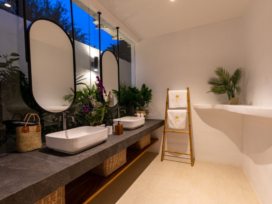 - Salle de bain attenante avec deux vasques, douche à effet pluie